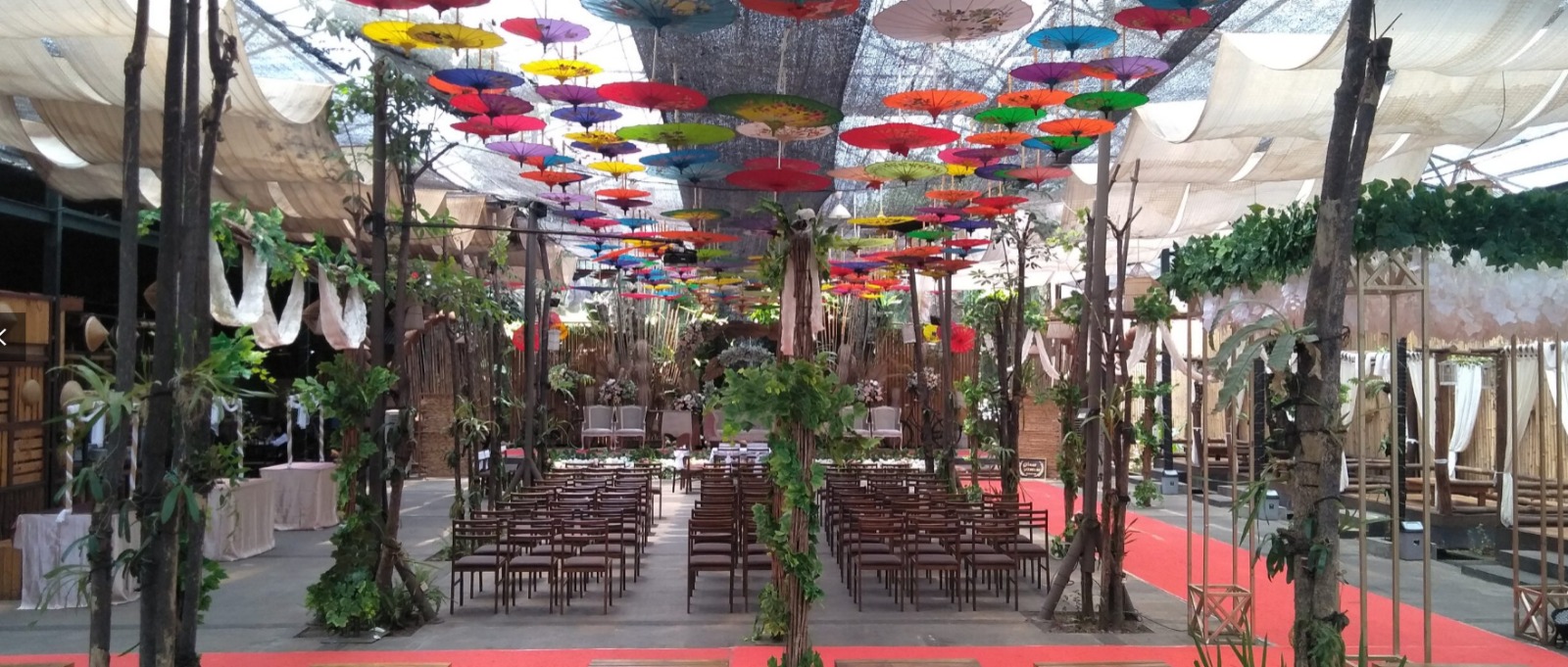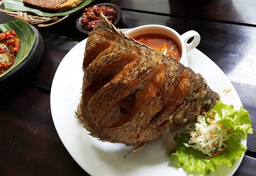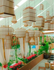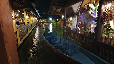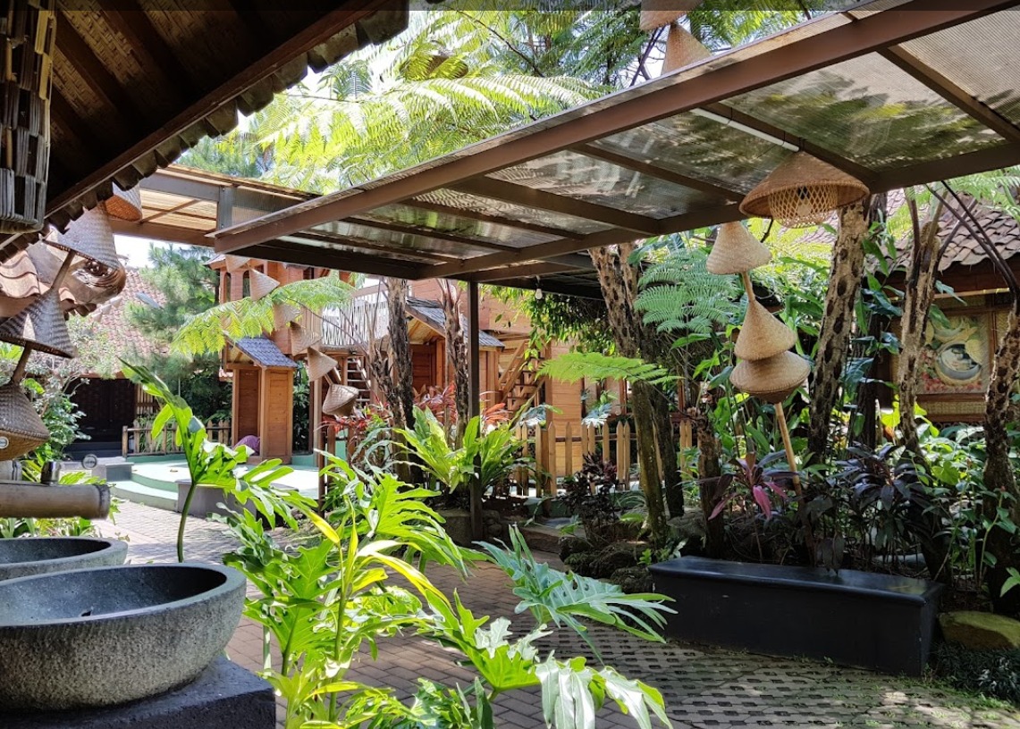 Tempat makan yang didesain seperti saung-saung tradisional, memberikan suasana yang nyaman dan asri. Pengunjung bisa menikmati hidangan sambil menikmati pemandangan sekitar.