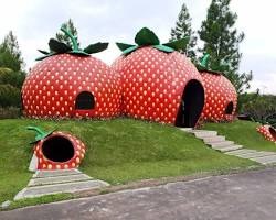 Sebuah spot foto yang unik dengan bentuk rumah-rumahan yang terbuat dari stroberi. Pengunjung bisa berpose di sini untuk mendapatkan foto yang instagramable.